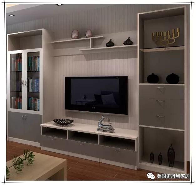 介绍电视柜的多种功能设计,如储物、展示、音响等。